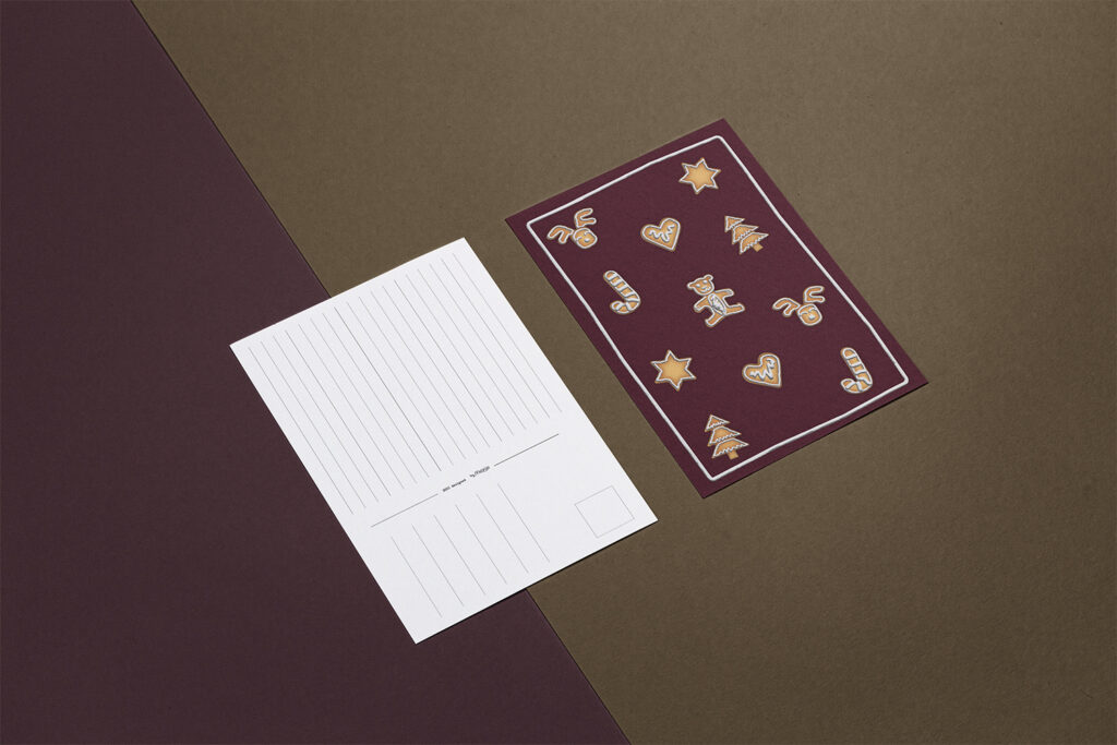 Christmas Cookies Effect PostcardMoQQo | Julia Wallner19. Oktober 2025Postcards Material & Method: Adobe Illustrator vector illustration with 3D rendering, glossy icing texture, and layered lighting effects for depth and realism.